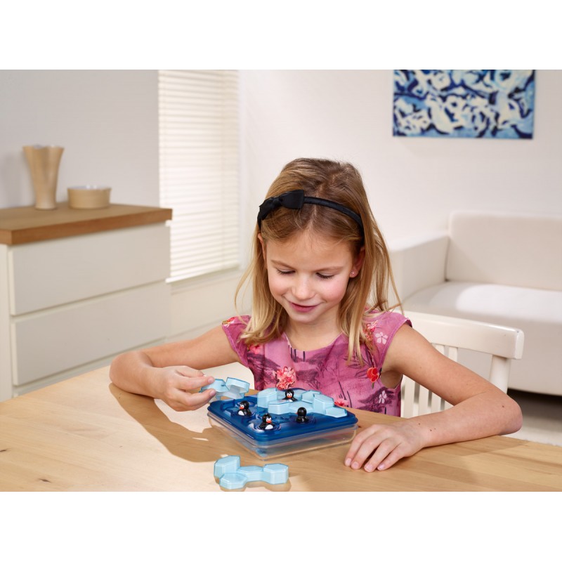 Alege o provocare si cele 5 piese de puzzle cu gheata si pinguini, una langa alta, astfel incat sa se incadreze toate pe tabla de joc.