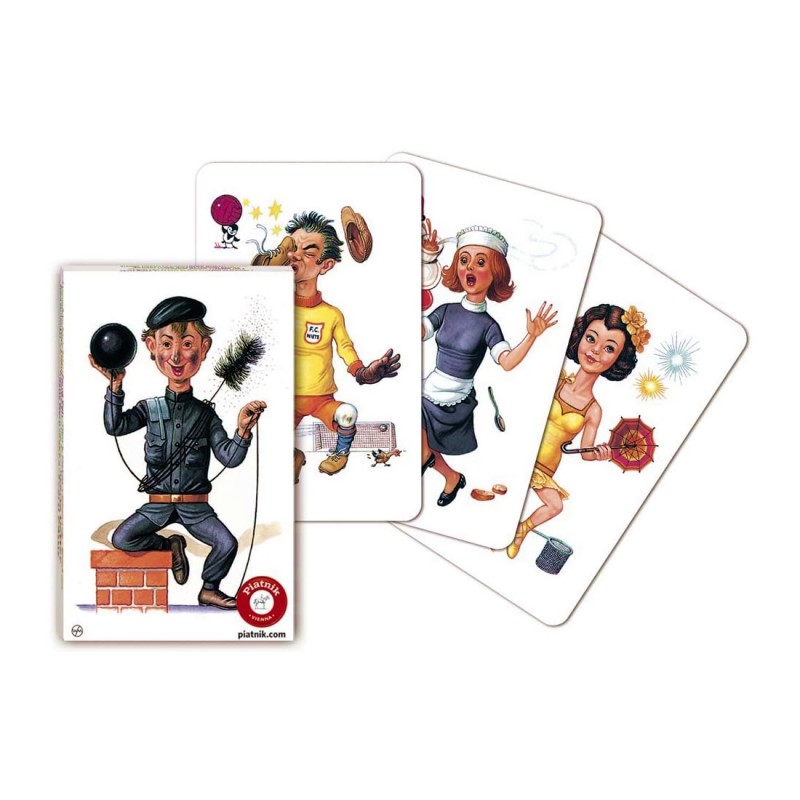 Iata jocul de Pacalici (Black Peter) clasic de la Piatnik! Imaginile personajelor sunt superbe si amuzante, in stil nostalgic, si arata oameni cu ocupatii diverse.