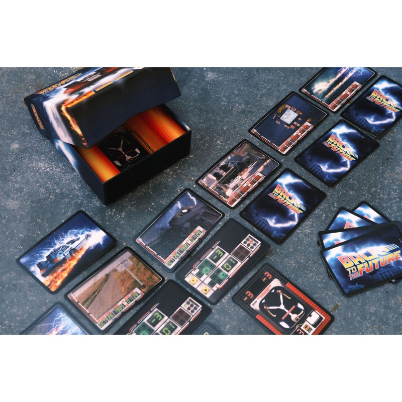 Jocul de carti "Back to the Future" are ca tema celebrul serial cu acelasi nume de la Universal Studios. Eroii se intorc din viitor in timpul nostru ca sa salveze lumea.