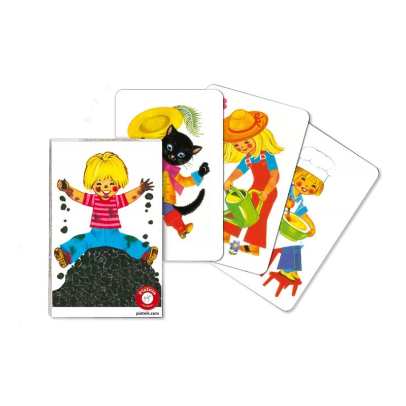 Iata jocul de Pacalici (Black Peter) clasic, al copilariei parintilor si bunicilor nostri, de la Piatnik! Imaginile personajelor sunt superbe, in stil nostalgic, si arata copii cu cele mai diverse tinute si ocupatii. In acest joc Pacaliciul este un copilas ajutor de cosar!