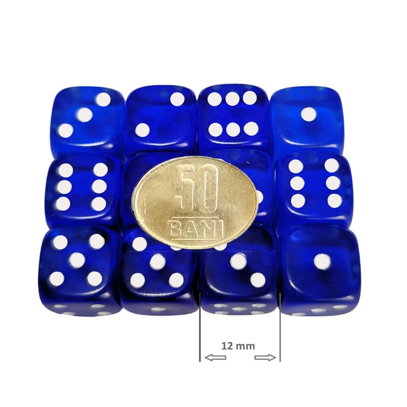Set 12 zaruri de 12 mm, albastre, de calitate, plastic translucid