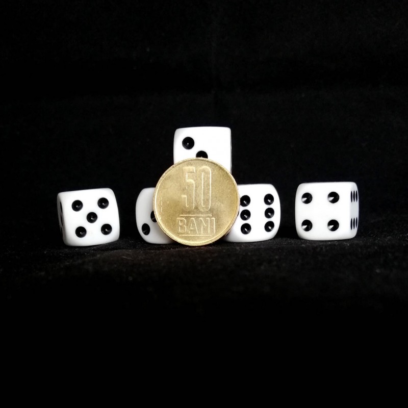 Va oferim un set de 12 zaruri albe, cu latura de 16 mm, pentru jucat Yamms si alte jocuri ..